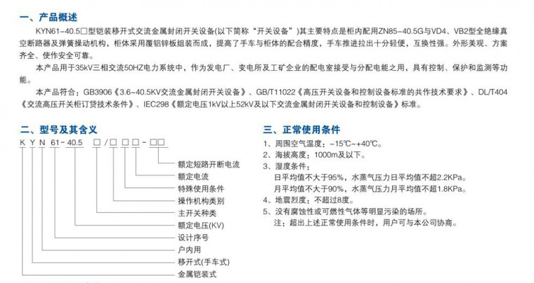 KYN61-40.5高壓柜適用于三相交流額定電壓40.5kV,額定頻率50Hz的電力系統(tǒng),用于接受和分配電能并對電路實行控制、保護及檢測,除廣泛用于一般電力系統(tǒng)外,還可使用于頻繁操作的場所。