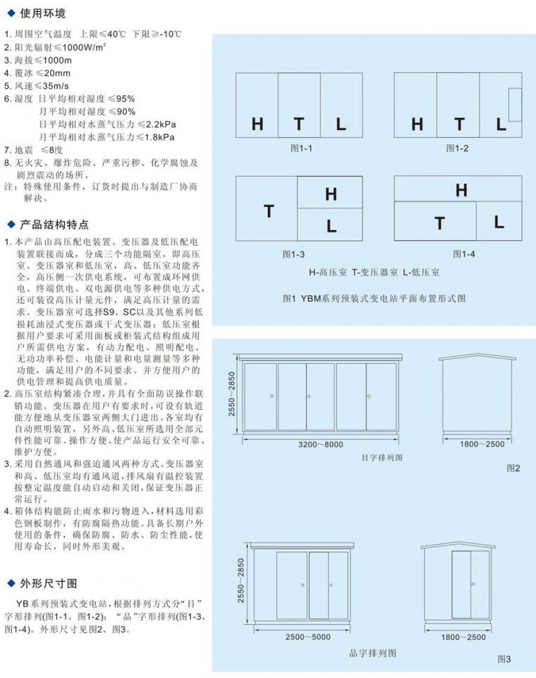 預(yù)裝式箱式變電站(景觀型)是將中壓配電網(wǎng)末端變電站預(yù)先在工廠內(nèi)制造裝配,包括變壓器、高壓開關(guān)設(shè)備和控制設(shè)備、低壓開關(guān)設(shè)備和控制設(shè)備、內(nèi)部接線(電纜、母排等)、計(jì)量、補(bǔ)償、避雷器等輔助設(shè)備,配置在一個(gè)公用的外殼或一組外殼內(nèi),并按相應(yīng)標(biāo)準(zhǔn)通過了型式試驗(yàn)的一種成套變電站(簡稱箱變或預(yù)裝式變電站)。